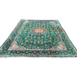 Pelo largo. Verde. Esta bella alfombra de colección está anudada a mano por artesanos, hecha de Lana. Pieza única.