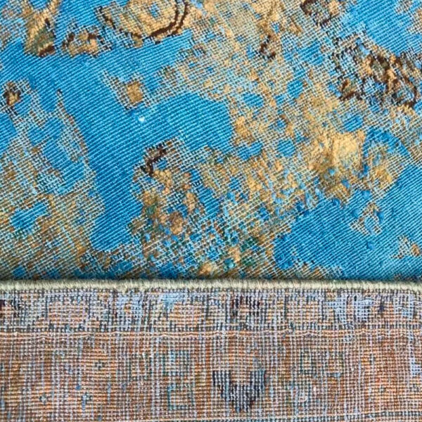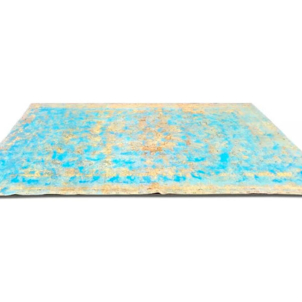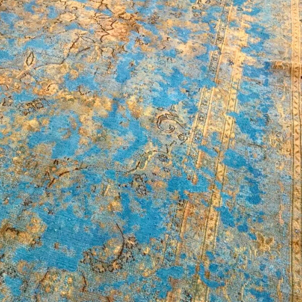 Esta alfombra persa Isfahan Vintage hecha a mano es una pieza excepcional por los colores azules y oros de la magnífica lana empleada en su confección.