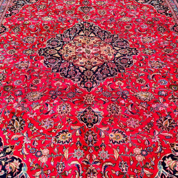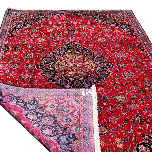 Magnífica alfombra Persa Tabriz, anudada a mano por expertos artesanos iraníes, con lana de extraordinaria calidad, hilada también a mano, y teñida con pigmentos naturales, sobre resistente urdimbre de algadón.
