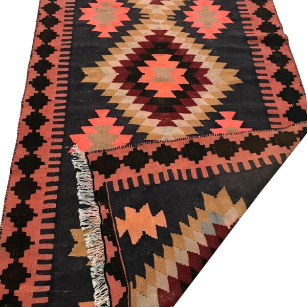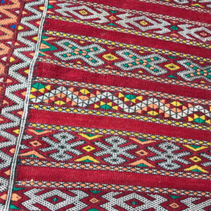 Esta alfombra es una pieza hermosa para decorar un espacio amplio en donde se pueda lucir su incomparable belleza. Con un gran tamaño de 2.90 m X 1.30 cm, la hace ideal para una sala, comedor, loft, estudio, etc. Hecha a mano con pigmentos naturales y patrones muy hermosos y elegantes. El estilo Kilim Afgano es uno de los más finos, aprovecha esta gran pieza.