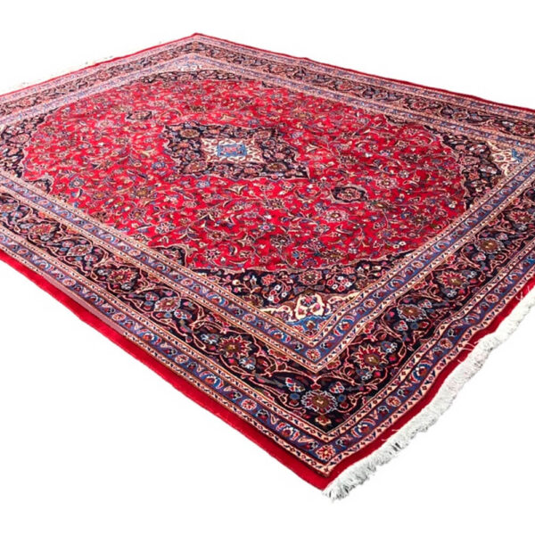 Esta alfombra es una pieza hermosa para decorar un espacio amplio en donde se pueda lucir su incomparable belleza. Con un gran tamaño de 3.90m X 2.90m, la hace ideal para una sala, comedor, loft, estudio, etc. Hecha a mano con pigmentos naturales y patrones muy hermosos y elegantes. Diseño Persa Kashan Original que conjunta perfectamente con diversos tipos de espacios.